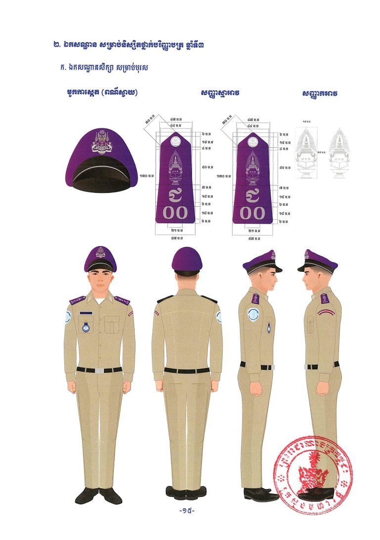 អាន / readប្រកាស ស្តីពី ការកំណត់រូបភាព របៀបប្រើប្រាស់ និងរបបផ្គត់ផ្គង់ ឯកសណ្ឋាន ស្លាកសញ្ញាសញ្ញាសក្តិនិងសម្ភារប្រើប្រាស់ផ្សេងៗ របស់មន្ត្រីពន្ធនាគារ