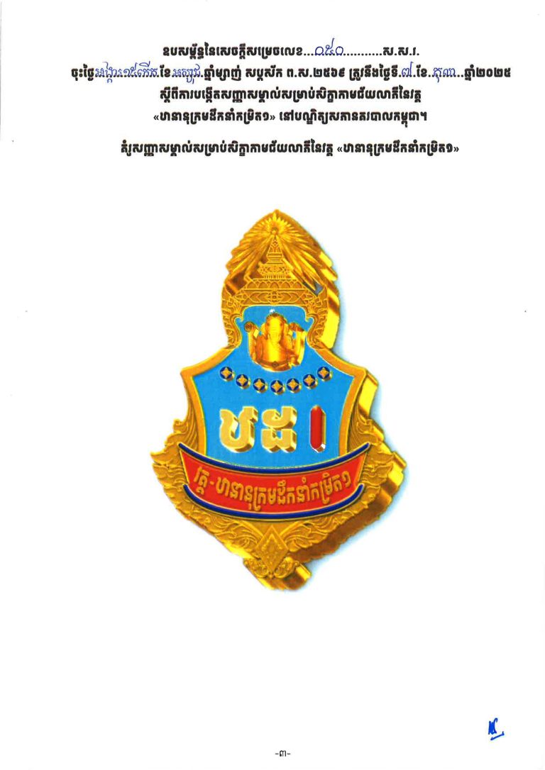 អាន / readសញ្ញាសម្គាល់សិក្ខាកាមជ័យលាភីវគ្គ «ឋាននុក្រមដឹកនាំកម្រិត៣»