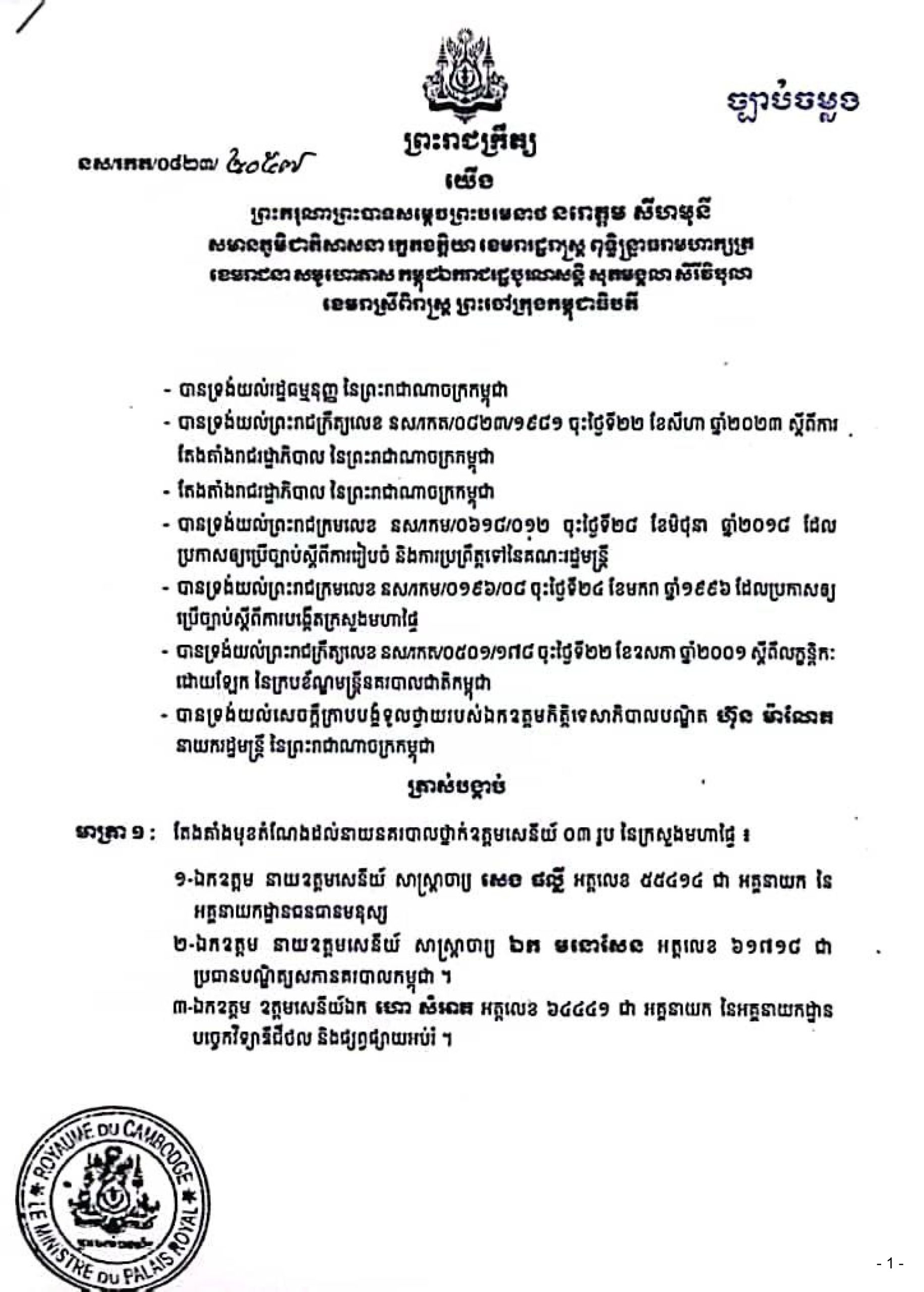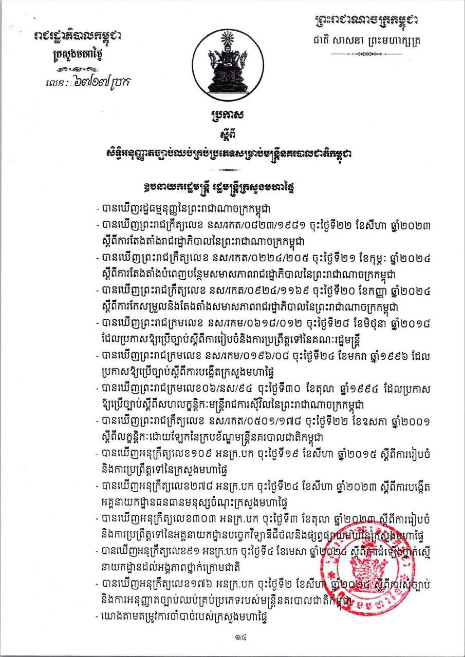 ប្រកាស ស្ដីពី សិទ្ធិអនុញ្ញាតច្បាប់ឈប់គ្រប់ប្រភេទសម្រាប់មន្ត្រីនគរបាលជាតិកម្ពុជា