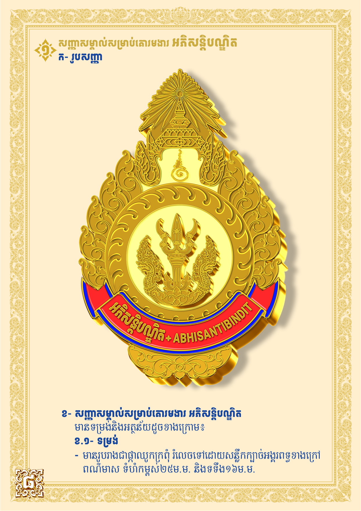 សញ្ញាសម្គាល់សម្រាប់គោរមងារ អភិសន្តិបណ្ឌិត ចេញផ្សាយដោយ៖ បណ្ឌិត្យសភានគរបាល កាលបរិច្ឆេទចេញផ្សាយ៖ ២០២៦ ទាញយក បើកមើល សញ្ញាសម្គាល់សម្រាប់គោរមងារ អភិសន្តិបណ្ឌិត ឯកសារពាក់ព័ន្ធ ឯកសណ្ឋាន ស្លាកសញ្ញា និងសញ្ញាសក្តិ មន្ត្រីពន្ធនាគារ February 25, 2026 ប្រកាស ស្តីពី ការកំណត់រូបភាព របៀបប្រើប្រាស់ និងរបបផ្គត់ផ្គង់ ឯកសណ្ឋាន ស្លាកសញ្ញាសញ្ញាសក្តិនិងសម្ភារប្រើប្រាស់ផ្សេងៗ របស់មន្ត្រីពន្ធនាគារ February 25, 2026 អនុក្រឹត្យ ស្តីពី ឯកសណ្ឋាន ស្លាកសញ្ញា និងសញ្ញាសក្តិ មន្ត្រីពន្ធនាគារ February 25, 2026 សៀវភៅគោល ឧក្រិដ្ឋវិទ្យា February 19, 2026 សៀវភៅគោល មូលដ្ឋានគ្រឹះនៃកុំព្យូទ័រ February 19, 2026 សៀវភៅគោល បច្ចេកទេសការពារព្រំដែន February 19, 2026
